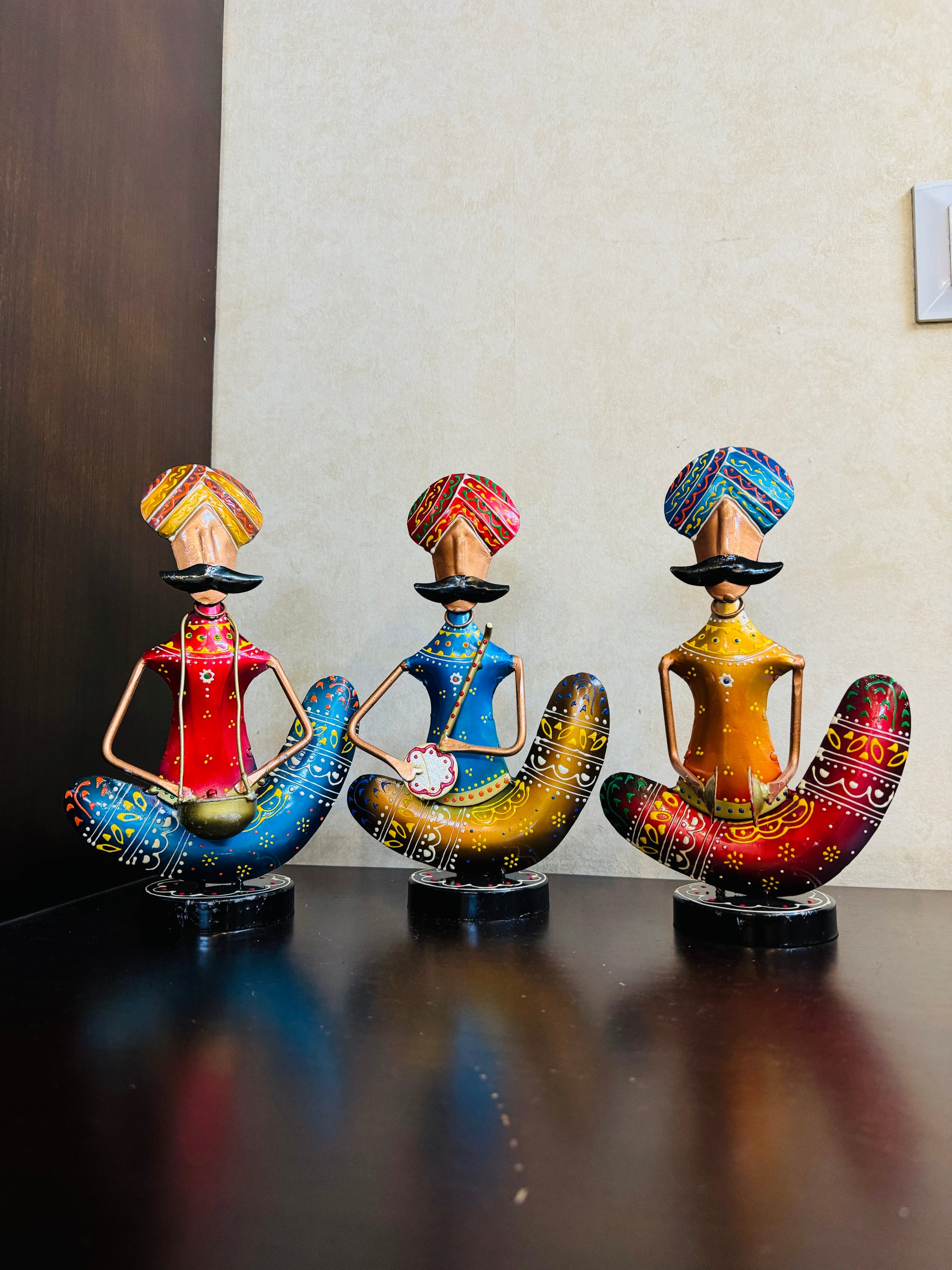 Handmade Indian Musician Figurines | Rajasthani Folk Art Metal Showpiece | Colorful Home Decor | Ethnic Tabletop Sculpture Gift