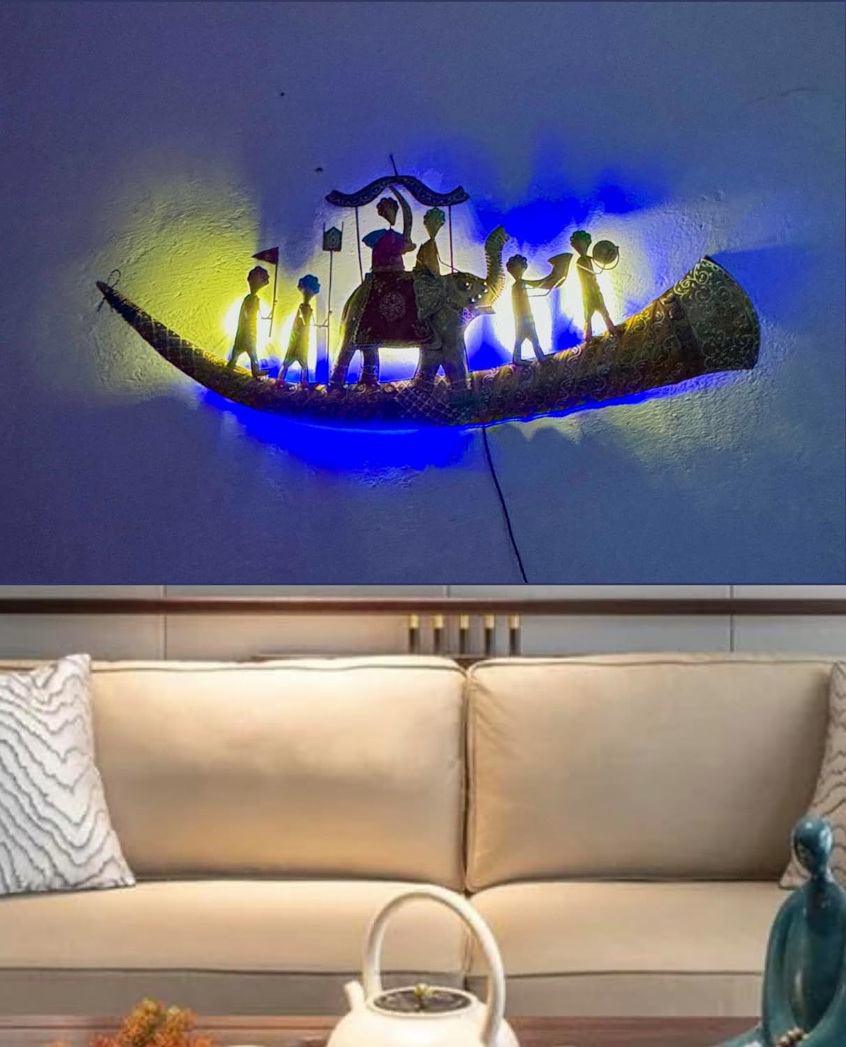 Bring home the grandeur of Indian royal traditions with this exquisite handcrafted elephant procession wall décor. Inspired by traditional Indian wedding processions and royal culture, this vibrant metal wall art adds elegance, richness, and cultural charm to any space.