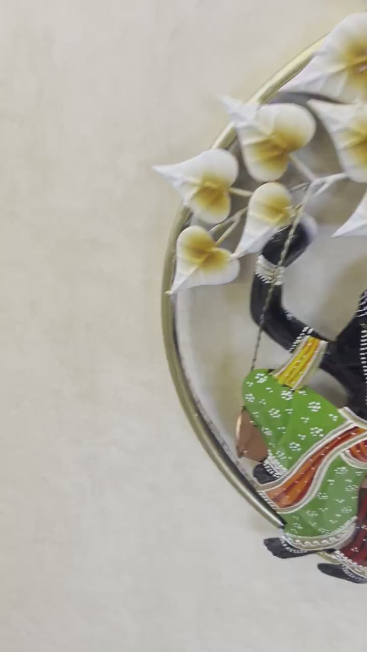 Add divine beauty and artistic charm to your home with this elegant Radha Krishna Metal Wall Décor. Designed in a graceful circular frame with a tree motif, this wall art beautifully depicts Radha and Krishna in a joyful swing pose, symbolizing love, harmony, and eternal devotion.